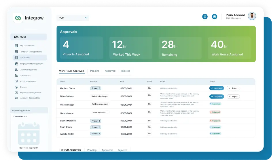 - Manage leave requests, holidays, and shift schedules